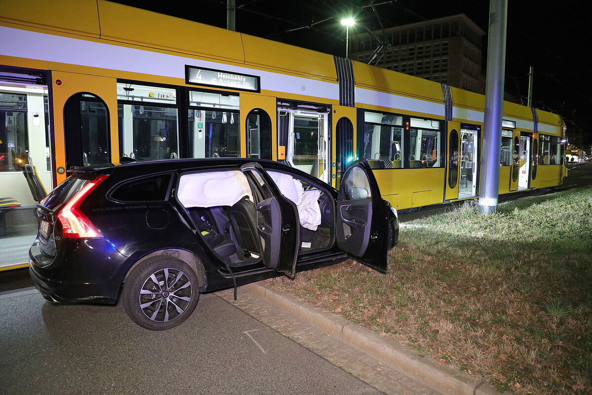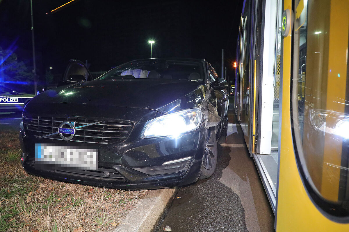 Ein Auto ist am späten Mittwochabend mit einer Straßenbahn am Pirnaischen Platz in Dresden zusammengestoßen. Den Informationen der Polizei zufolge ereignete sich der Crash gegen 21.55 Uhr im Kreuzungsbereich.