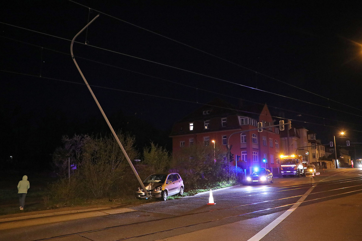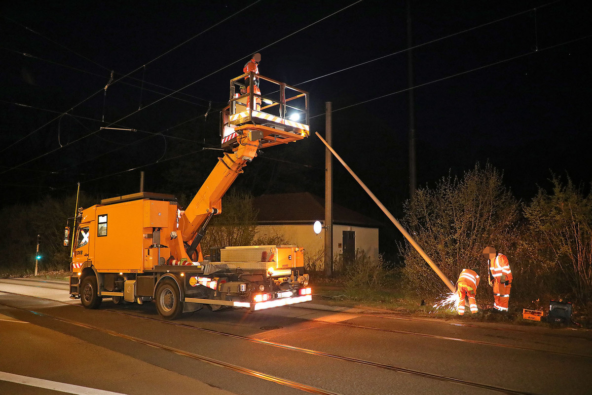 Der Autofahrer blieb glücklicherweise unverletzt. Durch den Schaden an der Oberleitung musste der Betrieb der Straßenbahnlinie 7 unterbrochen werden. Ein Schienenersatzverkehr wurde eingerichtet. Gegen 1.45 Uhr konnte die Straßenbahn wieder ihren Betrieb aufnehmen. Die Ursache des Unfalles wird von der Polizei ermittelt.