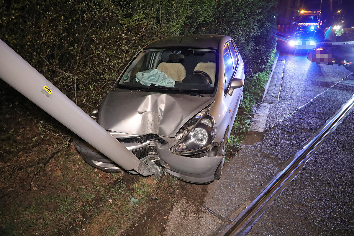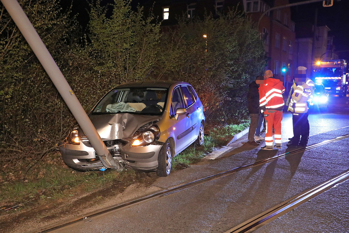 Unfall in Klotzsche: Auto kracht gegen Lampenmast