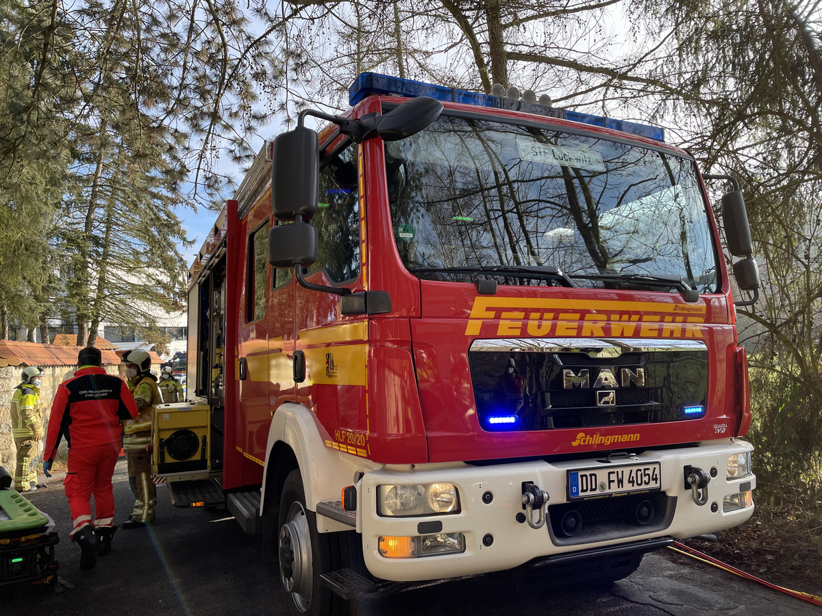 - Die Stadtteilfeuerwehr Lockwitz war schnell vor Ort.