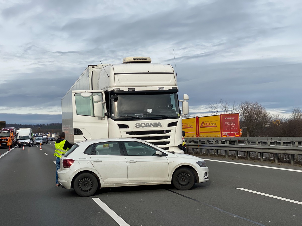 Die Frau wurde leicht verletzt in ein Krankenhaus gebracht. Die beiden Fahrzeuge stellten sich quer, sodass die A4 Richtung Erfurt kurzzeitig voll gesperrt werden musste. Es bildete sich ein langer Stau. Der Sachschaden liegt bei rund 6.000 Euro.