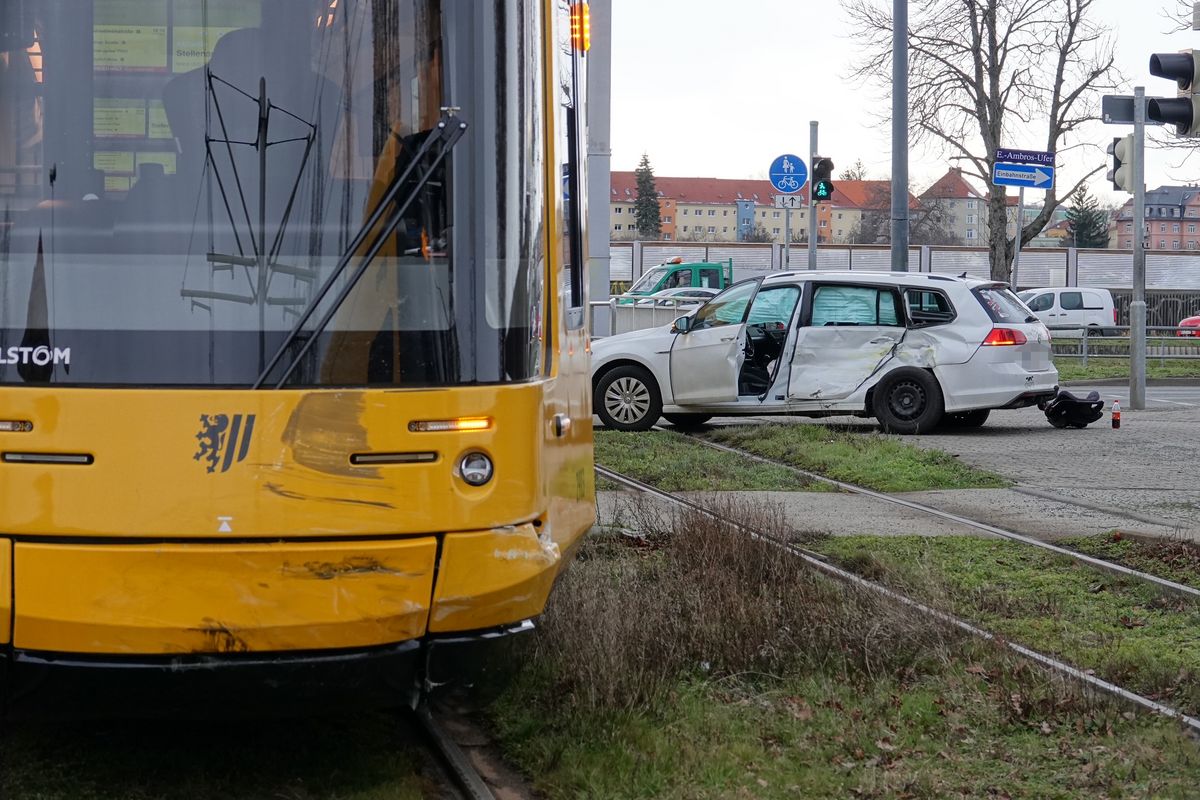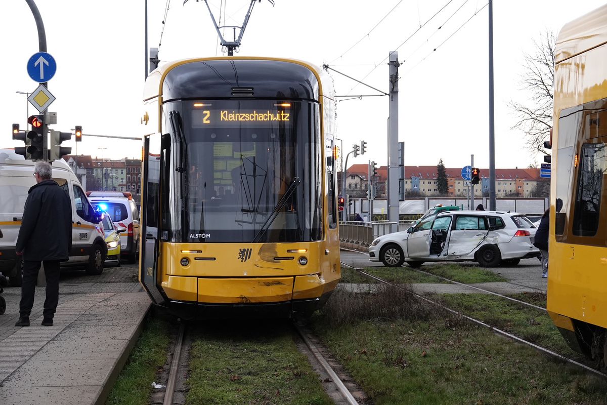 Auf der Kreuzung Fröbelstraße/Emerich-Ambros-Ufer sind am Montagnachmittag eine Straßenbahn und ein VW Golf zusammengestoßen. Wie uns die Polizei sagte, war der Golf (Fahrer 34) beim regelwidrigen Rechtsabbiegen von einer Straßenbahn (Fahrer 53) der Linie 2 erfasst worden. Der Golffahrer und ein Kleinkind wurden augenscheinlich verletzt und in ein Krankenhaus eingeliefert.