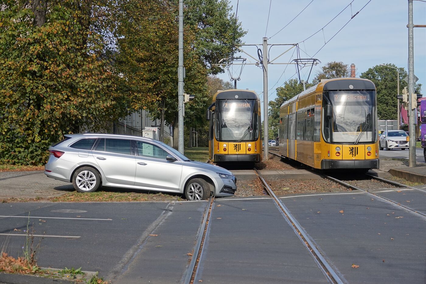 - An der Kreuzung Königsbrücker Straße / Fabricestraße kollidierte ein Skoda Octavia mit einer Bahn der Linie 8
