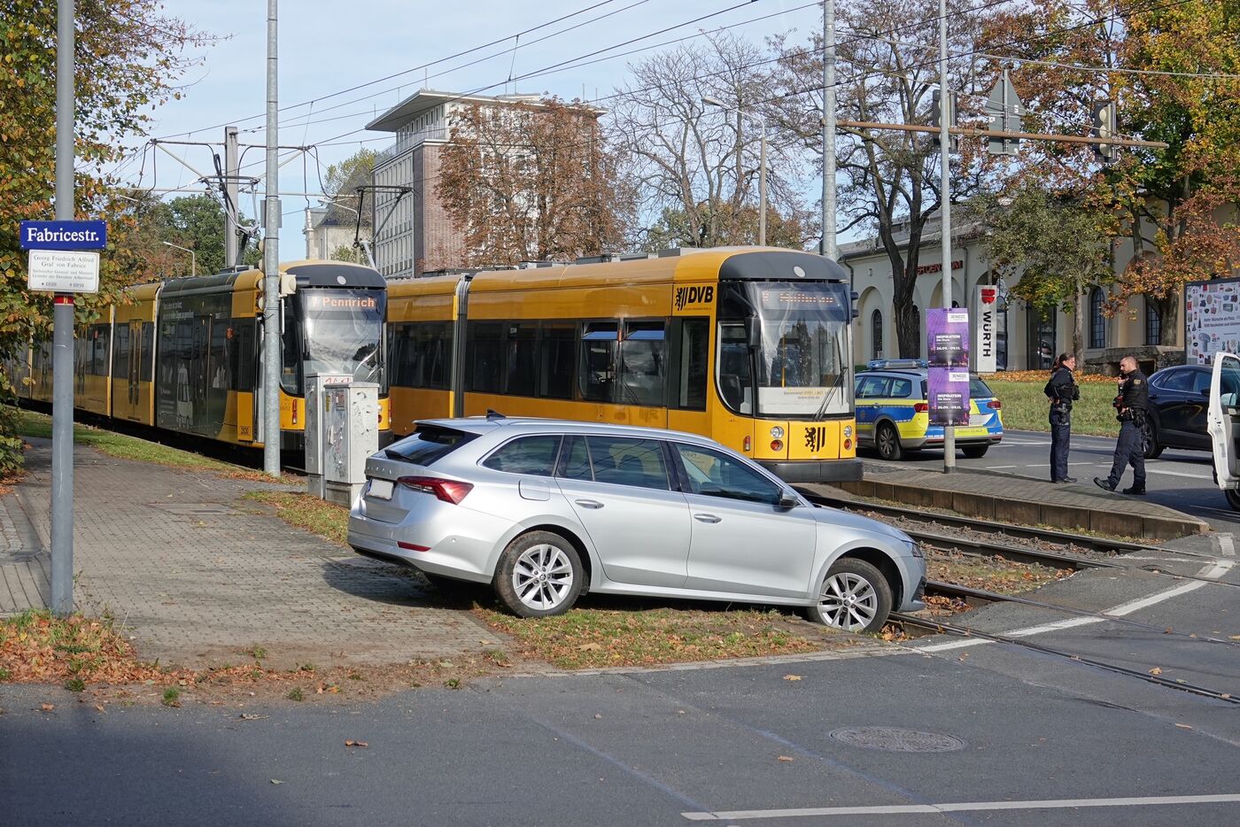 An der Kreuzung Königsbrücker Straße / Fabricestraße kollidierte ein Skoda Octavia mit einer Bahn der Linie 8. Nach Angaben der Polizei wollte der Fahrer des Skoda nach links in die Fabricestraße abbiegen.