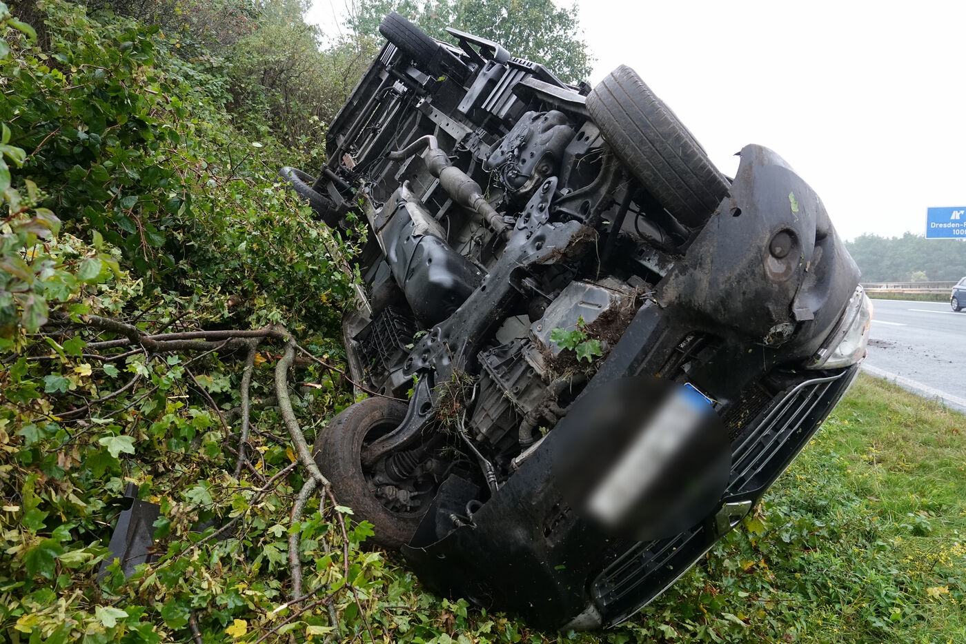 Ein Unfall hat den Berufsverkehr auf der A4 am Dreieck Dresden-Nord am Mittwochmorgen zeitweise lahmgelegt. Laut Polizei war ein Kleinlaster Renault Master gegen 7 Uhr auf regennasser Fahrbahn ins Schleudern geraten. Er prallte gegen die Mittelleitplanke, kam dann nach rechts von der Autobahn ab und kippte auf dem Grünstreifen um.