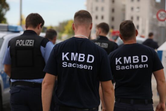 Aktuell sind Polizeibeamte im Bereich unterwegs und weisen die etwa 3.300 betroffenen Anwohner mit Lautsprecherdurchsagen nochmals auf die anstehende Evakuierung hin. Gleichzeitig sind die Kräfte der Feuerwehr Dresden im Einsatz.