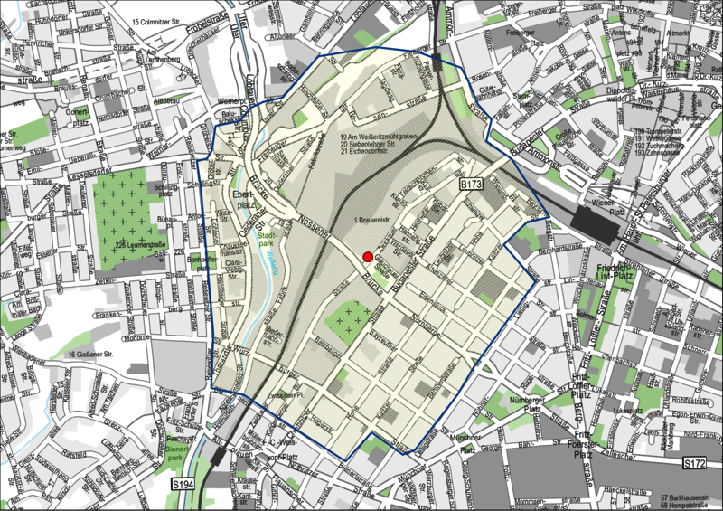 Der Bombe wurde an der Nossener Brücke, nahe des Eisenbahnmuseums entdeckt. In direkter Umgebung befinden sich mehrere Firmen und die Bahnstrecke Richtung Freital. Nicht weit entfernt an der Budapester Straße stehen mehrere Wohnhäuser.