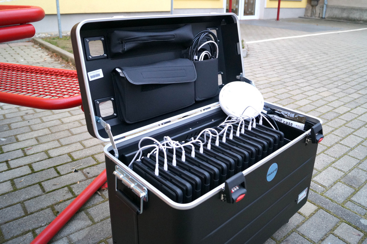 - Im "Pilotkoffer" werden die Tablets mit Schutzhülle und interaktiven Stift aufbewart, geladen und synchronisiert
