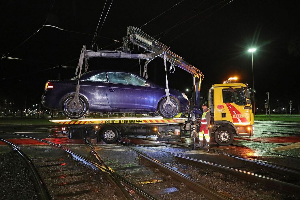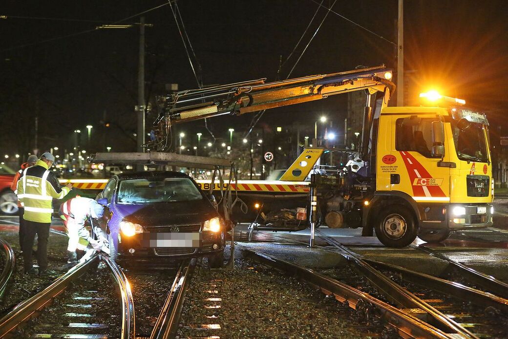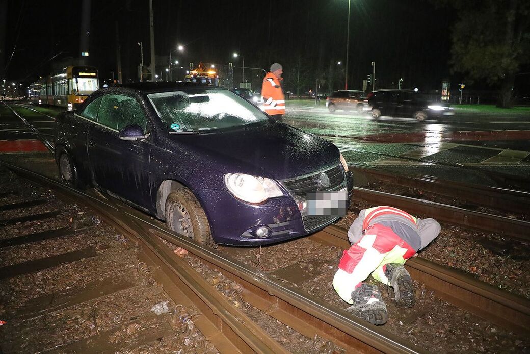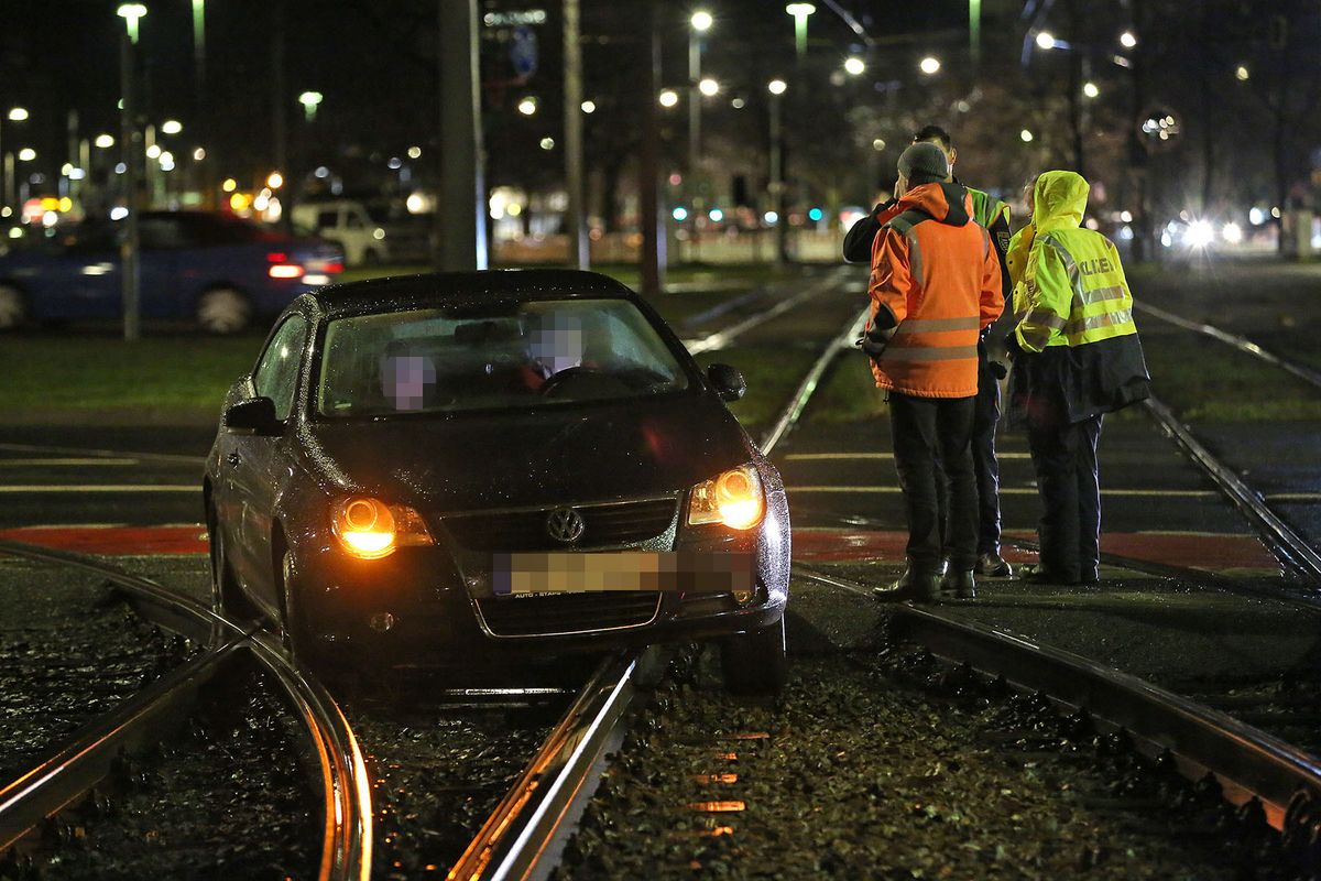 Am Georgplatz musste am Montagabend ein Auto aus dem Gleisbett gehoben werden. Die Fahrerin wollte nach Informationen unseres Reporters gegen 22 Uhr von der Waisenhausstraße auf die St. Petersburger abbiegen. Dabei hat sie sich offenbar in der Spur vertan und bog zu zeitig ab. Der Volkswagen rauschte in die Schienen und blieb stecken. Ein Abschleppdienst mit Kranwagen musste kommen, um den VW aus der Klemme zu befreien. Mehrere Straßenbahnlinien mussten bis 23:19 Uhr Umleitung fahren.