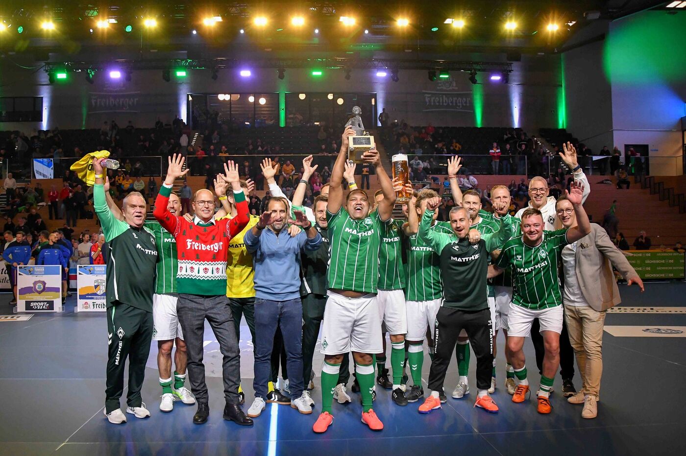 Werder Bremen hat in Dresden das Walter-Fritzsch-Turnier im Hallenfußball gewonnen. Im Finale des Legenden-Turniers in der BallsportARENA setzten sich die Bremer vor 2.400 Zuschauern mit 3:2 gegen Erzgebirge Aue durch.