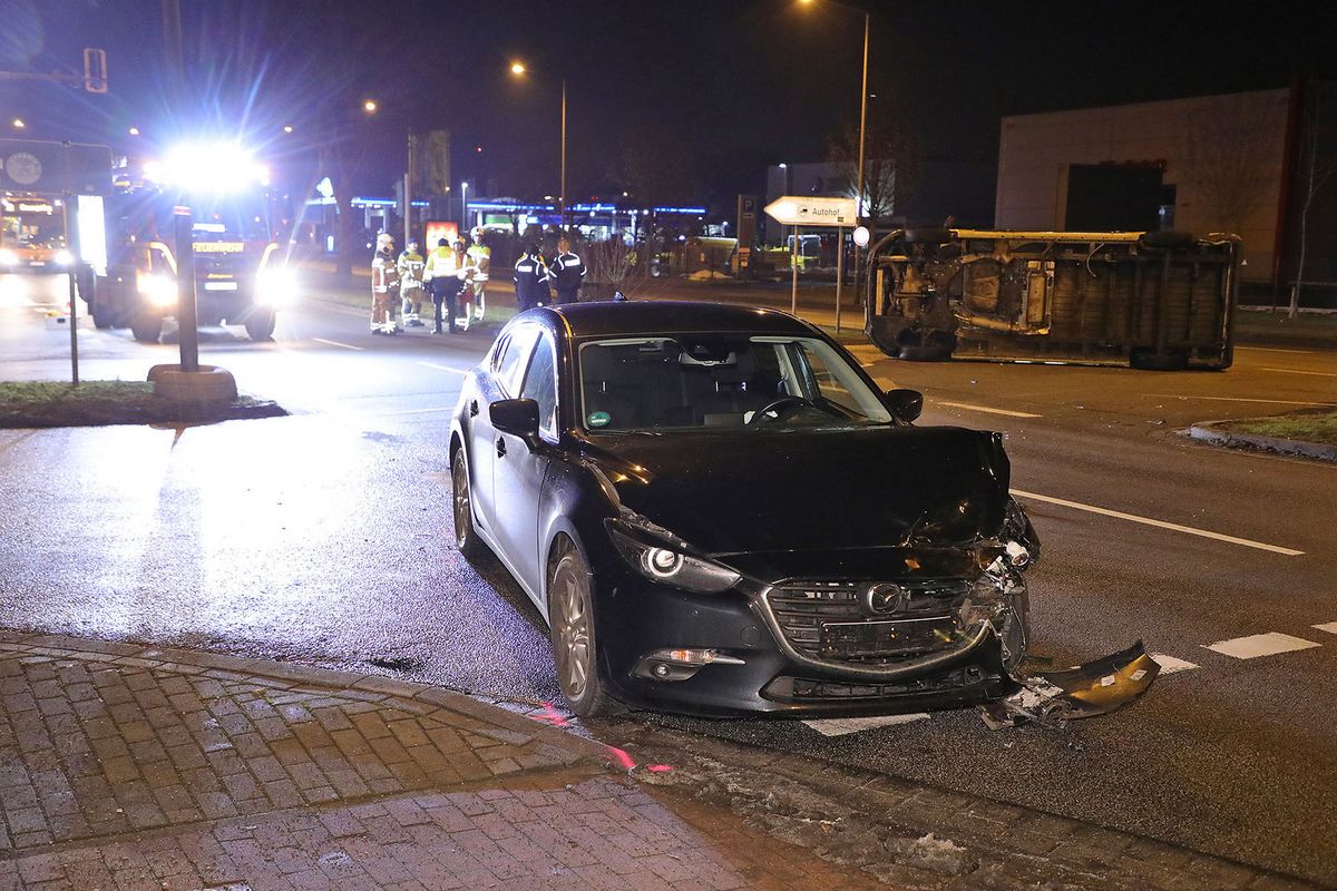 In der Folge kippte das Begleitfahrzeug für Schwertransporte um. Die 32-jährige Mazda-Fahrerin wurde leicht verletzt. Der Schaden wurde mit 15.000 Euro beziffert.