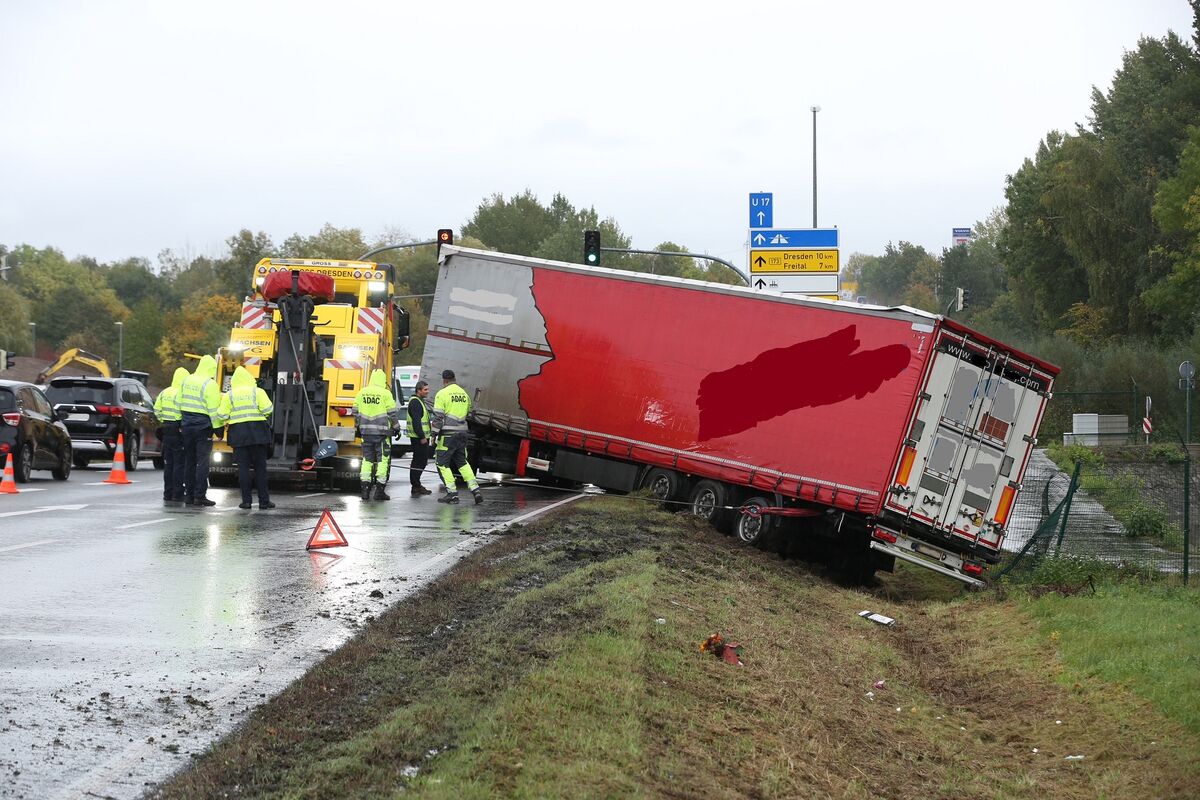 Der Verkehr wurde an der Unfallstelle vorbeigeleitet. Es bildete sich ein Stau in Richtung Dresden. Der Abschleppdienst zog mit zwei Bergefahrzeugen den beladenen Auflieger aus dem Graben. Die Polizei ermittelt zur Unfallursache.