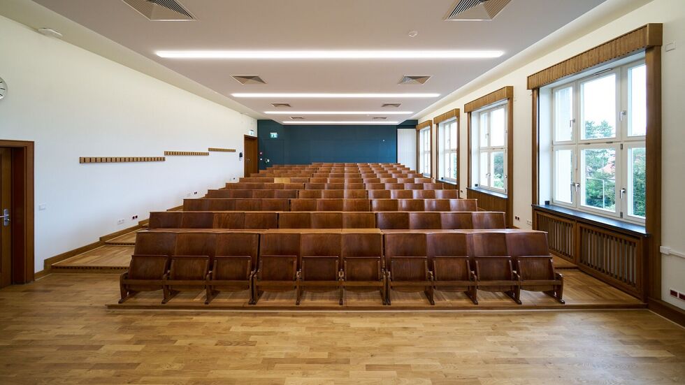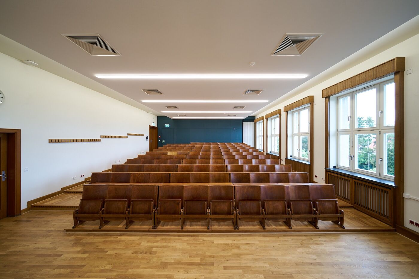 Die anspruchsvolle Sanierung erfolgte unter strengen Auflagen. Neben der sensiblen denkmalpflegerischen Behandlung des Bauwerkes wurden Brandschutzmängel behoben und die Barrierefreiheit hergestellt.