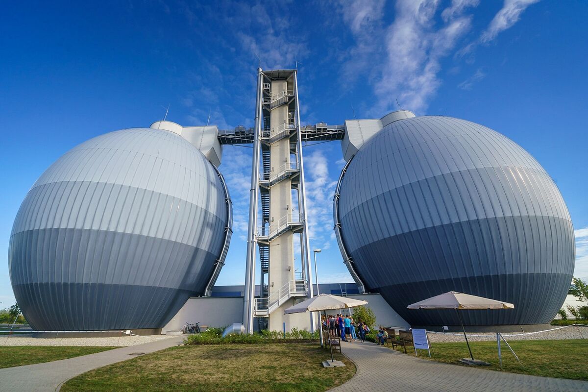 Wer will, kann auch die sogenannten Faul-Eier von oben besichtigen. Dazu geht es 35 Meter in die Höhe. Der Eintritt ist frei, an der Marie-Curie-Straße gibt es kostenlose Parkplätze und einen Bus-Shuttle.