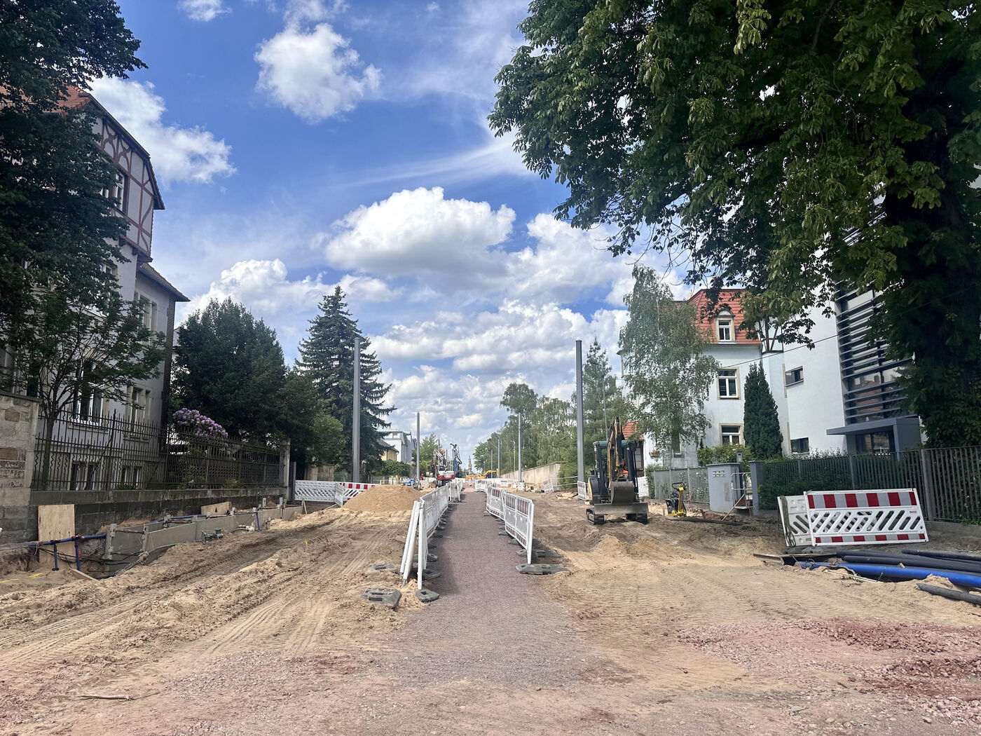 Bereits am Donnerstag (30. Oktober) wird der Straßenbau fertig, so die Stadt. Bevor die Fahrbahn wieder freigegeben wird, führen die Dresdner Verkehrsbetriebe noch Prüfungen an der Fahrleitungsanlage durch – inklusive Probefahrten mit der Straßenbahn. Am 17. November ist die Strecke dann bereit für die Autos und Straßenbahnen.