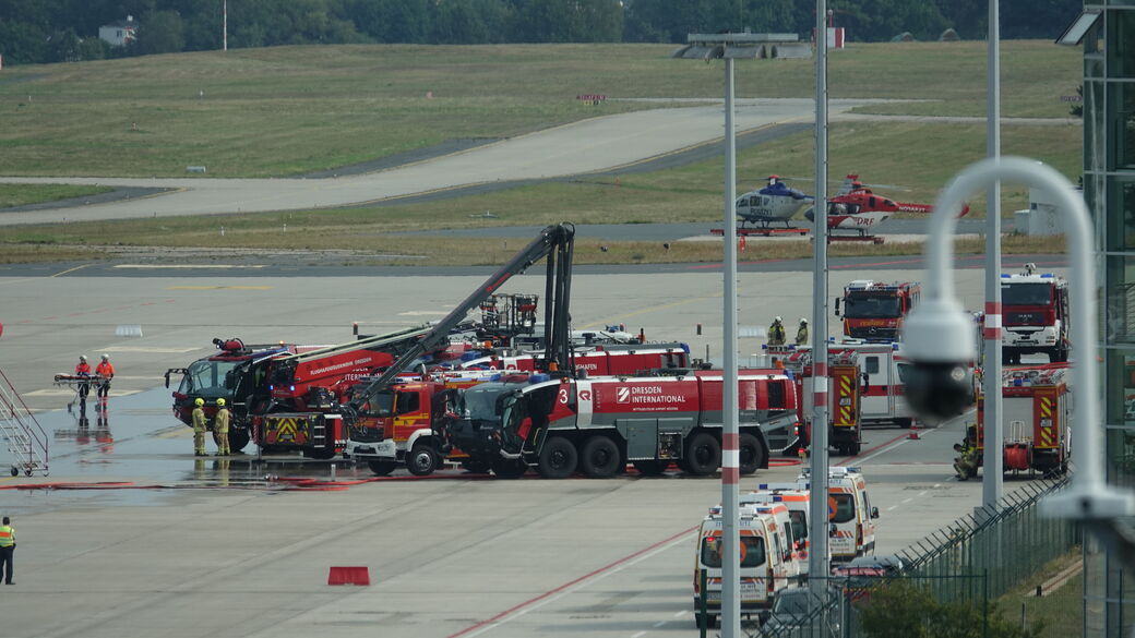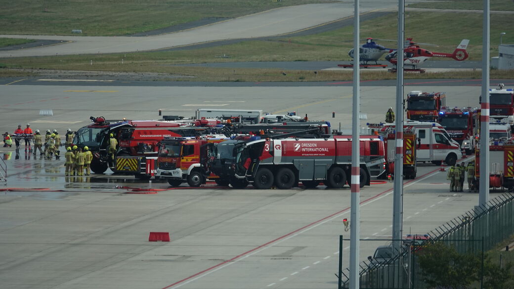 Die Dresdner Feuerwehr war am Samstagvormittag mit zahlreichen Einsatzkräften auf dem Flughafen unterwegs. Grund dafür war aber nicht ein Alarm, es handelte sich dabei um eine Übung. Wie die Feuerwehr mitteilte, trainierten sie gemeinsam mit dem Airport Dresden, verschiedener Hilfsorganisationen, der Bundes- und