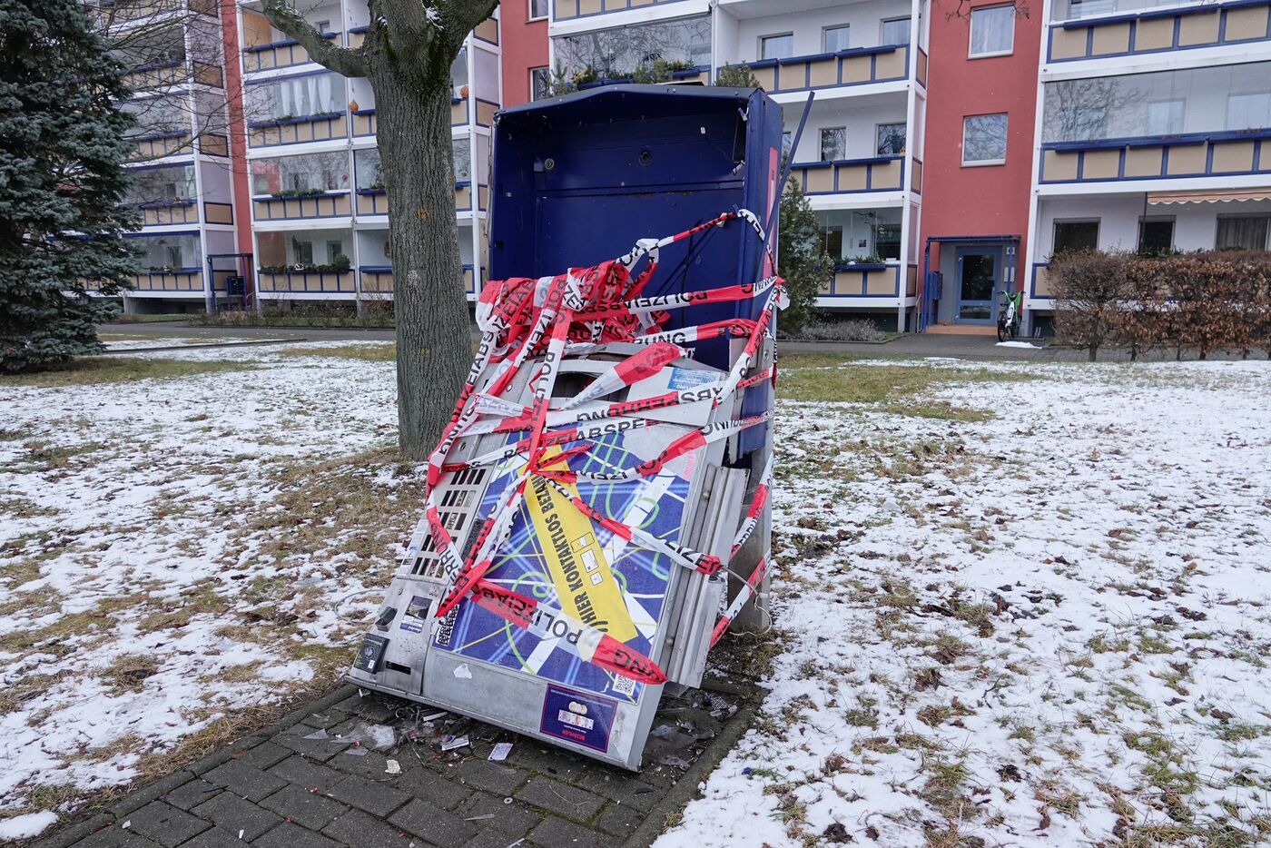 - Der gesprengte Zigarettenautomat in Dresden-Prohlis.