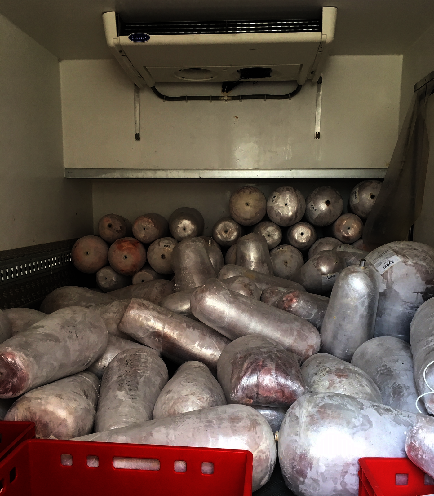 In diesem Fall war nicht nur die Temperaturanzeige sondern das ganze Kühlaggregat defekt. Da die Zöllner auch hier von einer erheblichen Temperaturüberschreitung ausgehen konnten, wurde das Fahrzeug samt Lieferung ebenfalls an die zuständige Lebensmittelüberwachungsbehörde übergegeben.