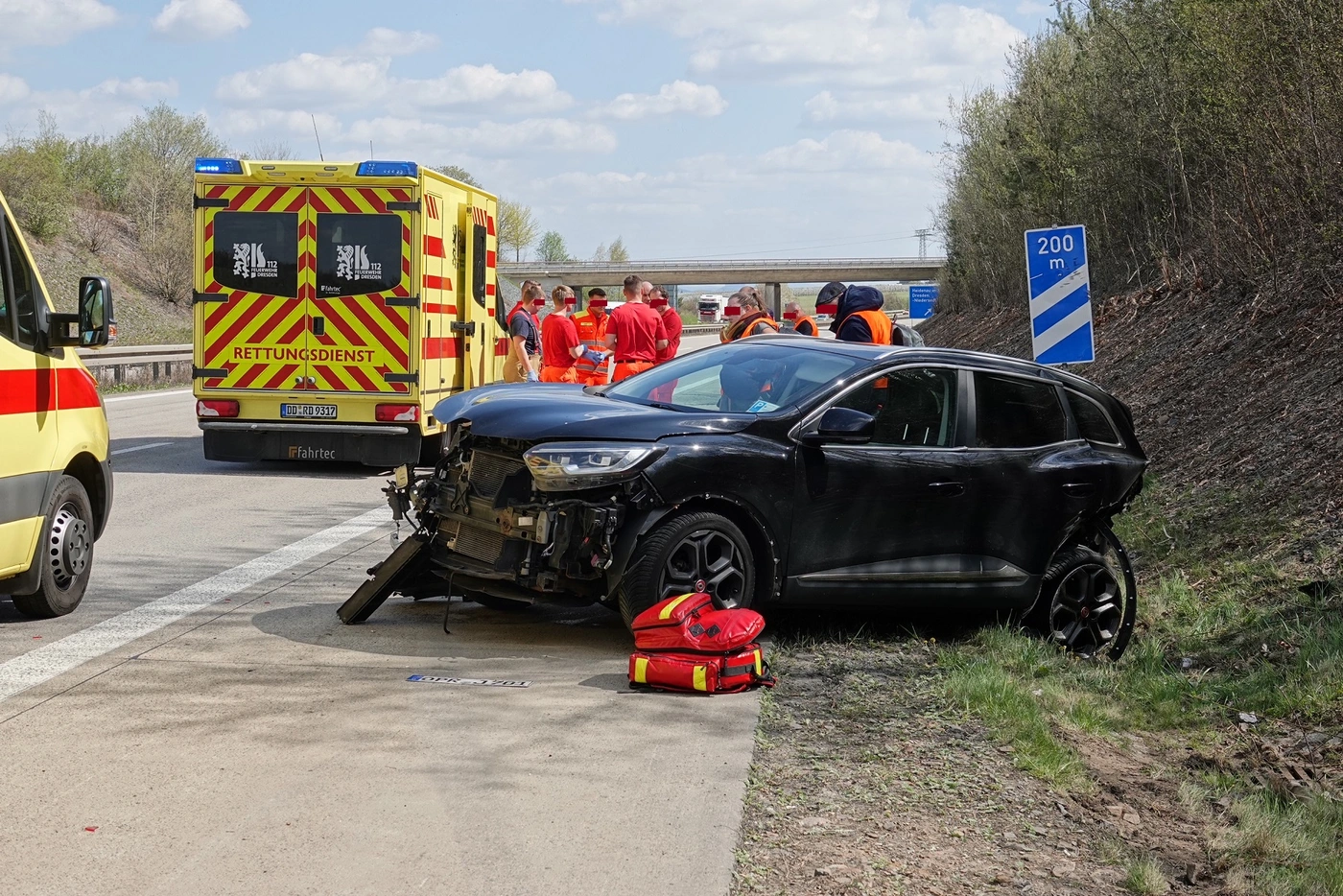 Einen weiteren Unfall auf der A17 gab es am Freitagmittag zwischen Dresden-Prohlis und Heidenau. Dort waren ein Renault und ein Mercedes zusammengestoßen. Sechs Personen wurden zum Teil schwer verletzt und in Krankenhäuser eingeliefert. An beiden Fahrzeugen entstand Totalschaden.